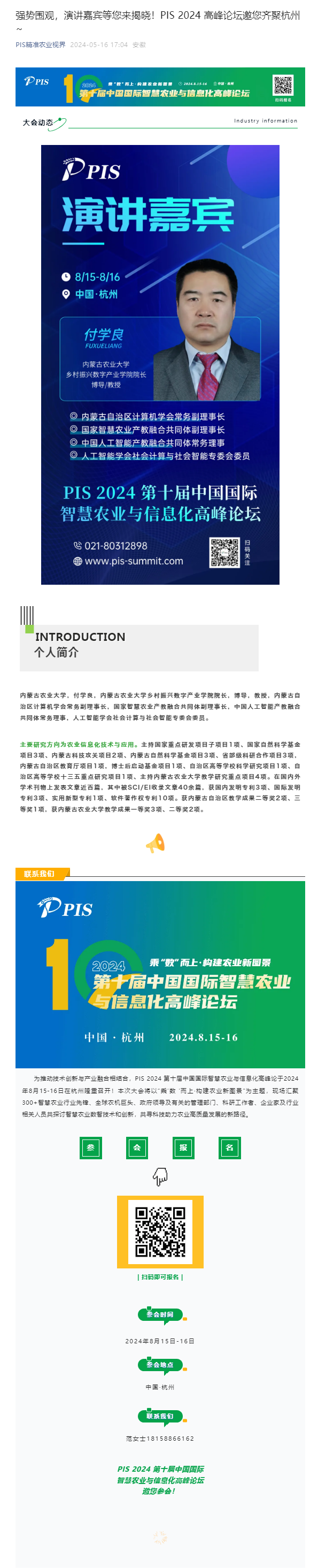 征稿启动 | PIS 2024 第十届中国国际智慧农业与信息化高峰论坛投稿论文征集在新的识别和比较指标体系下,我国农业强国建设,大数据、物联网、人工智能、5G通信、机器人等新一代信息技术正大显身手。自动导航和通信技术用于优化路径和提高作业精度,运用传感器、大数据、物联网等可实现对环境和生物特征的实时监控,助力精细548 人浏览