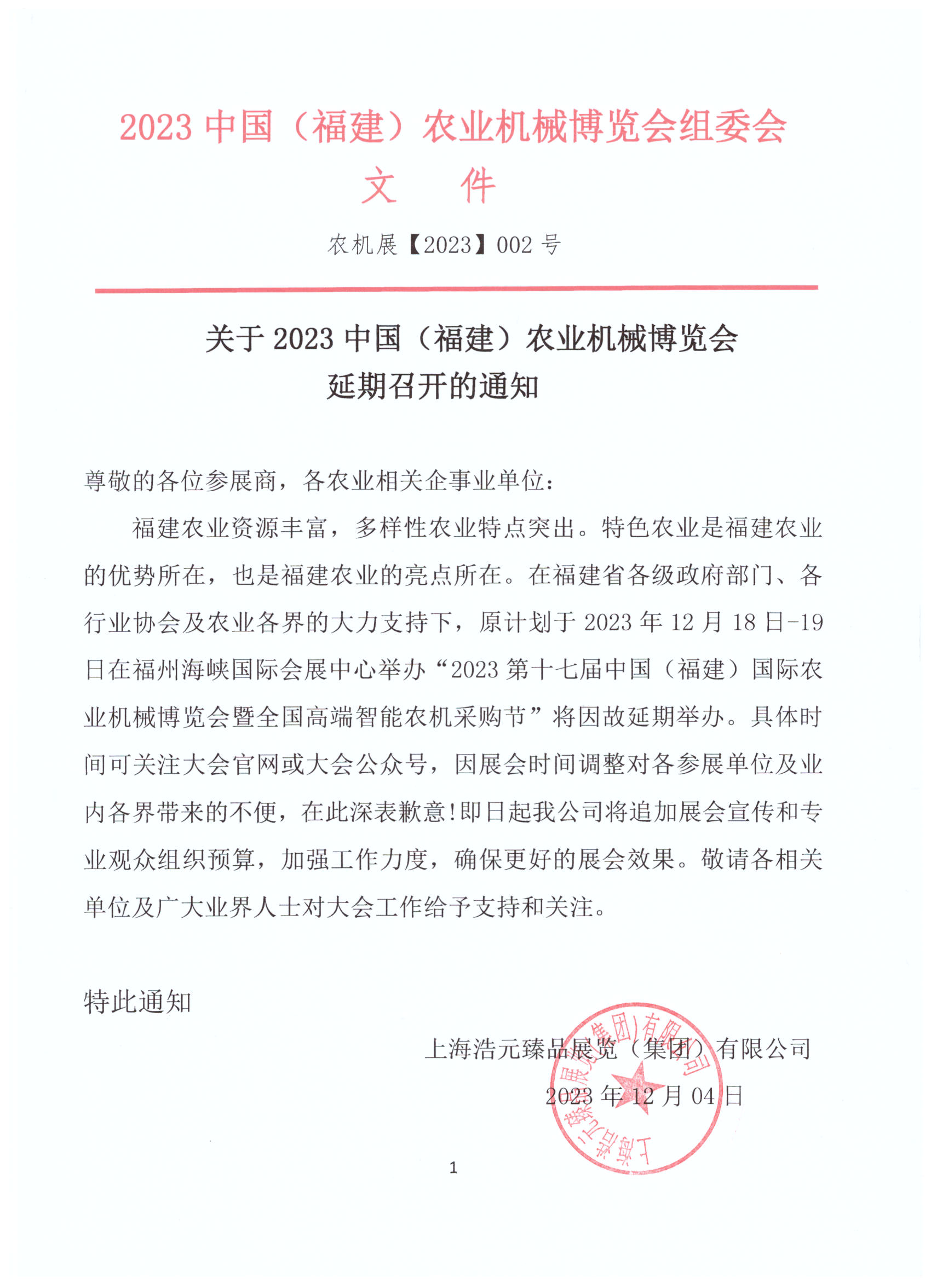 2024福建农业机械博览会即将于1月6日在福州盛大开幕尊敬的参展商、媒体及各农业相关企事业单位:您好!2024福建农业机械博览会即将于1月6日-7日在福州海峡国际会展中心(福州市仓山区城门镇南江滨西大道198号)举行。本届博览会以绿色、高效、智能为主题,旨在展示农业机械领域的新技术、新成果、新510 人浏览