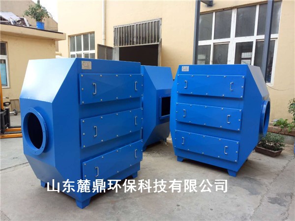 车间含有有机气体或颗粒物经集气罩收集,管道输送有机气体进入活性炭塔,有机气体进入塔内时,风速顺间降下,气体内含的较大颗粒杂物便自然沉降入塔底部,而溶入气体内的有机气体部分随气体流向流进活性炭过滤层,有机气体进入炭层时,有机气体被活性炭吸附进炭内,而干尽的空气穿过炭层进入出气仓,气体经过机械自吸后排入大气中.而活性炭层的在吸附过程中,炭会有个饱和的时间段,其活性炭饱和的过程长短与气体本身内部所含气体的浓度和工作的时间长短有直接相关。