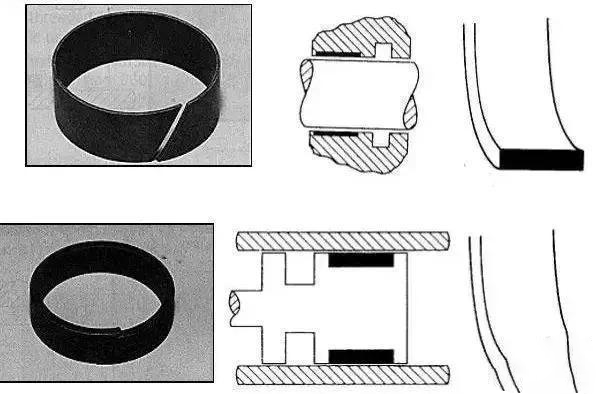 导向支撑环安装在液压缸端盖和活塞上,用于支撑活塞杆和活塞,引导活塞做直线运动,防止发生金属与金属的接触。材料上有塑料、涂有聚四氟乙烯的青铜等。