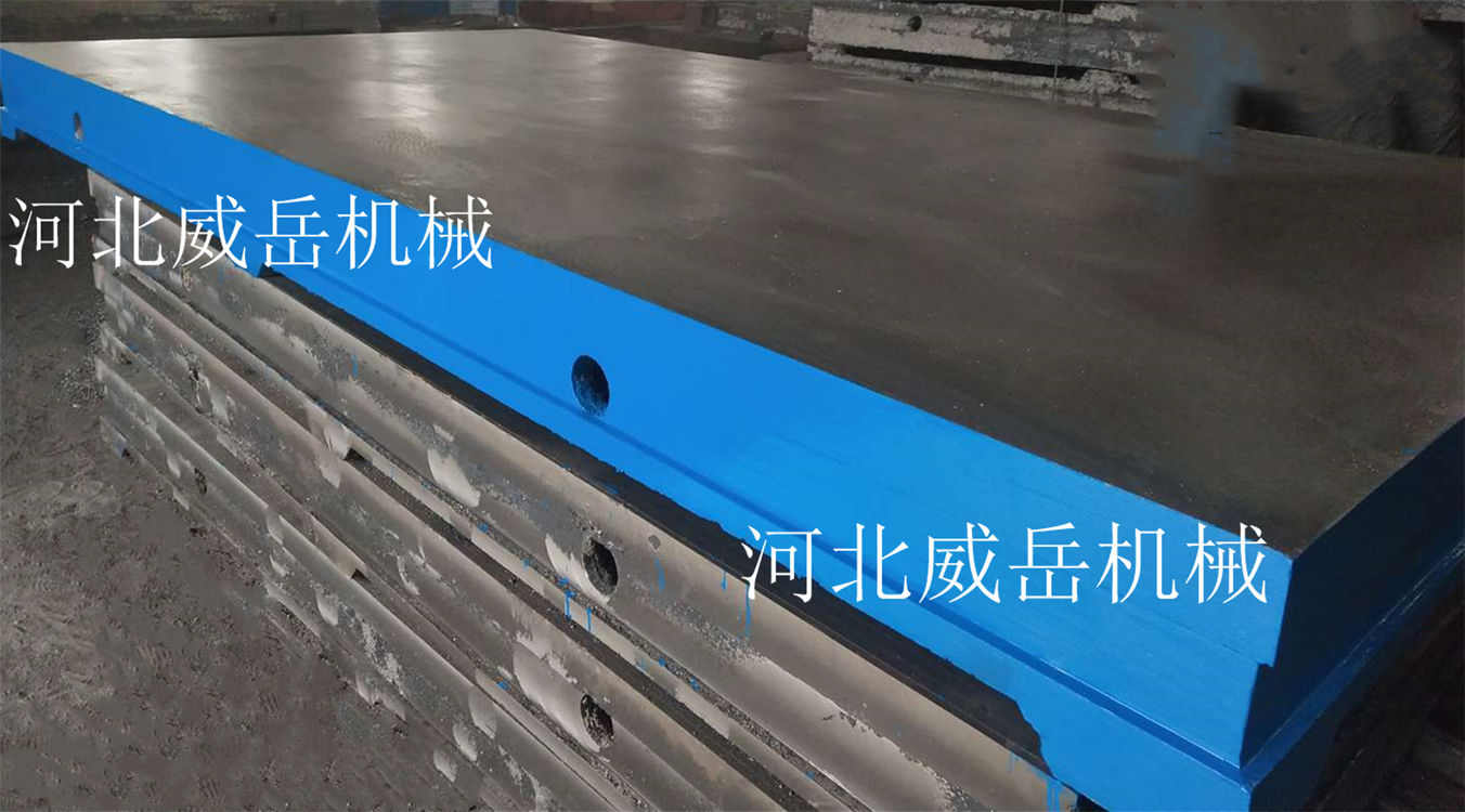 铸铁平台的生产工艺级流程:T型槽铸铁平台采用消失模与树脂砂相结合铸造工艺铸造而成。为达到xiaochu铸造内应力与加工内应力的目的,经过两次xiaochu内应力处理。内应力xiaochu处理方式为:人工退火处理,时效振动仪振动处理,和自然时效处理(自然放置2-3年)。目前多采用人工退火处理和时效振动仪振动处理。为保证其平面度准确稳定及抗磨性,平台台面多采用人工铲刮处理。工作面可以设计圆孔,长方孔,方孔,T型槽,U型槽,V型槽等以便于工件或工装夹具的安放。