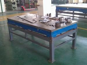 钳工平台通常采用高强度铸铁HT200-300制造,其工作面硬度为HB170-240。经过两次人工处理(人工退火600度-700度或自然时效2-3年),使用产品的精度稳定,耐磨性能好。