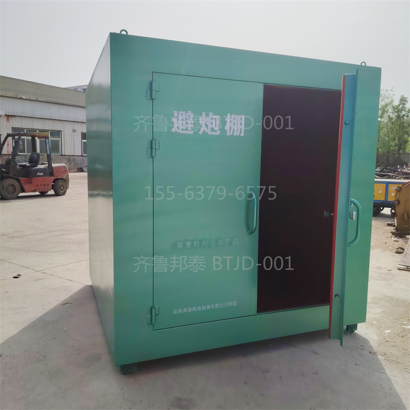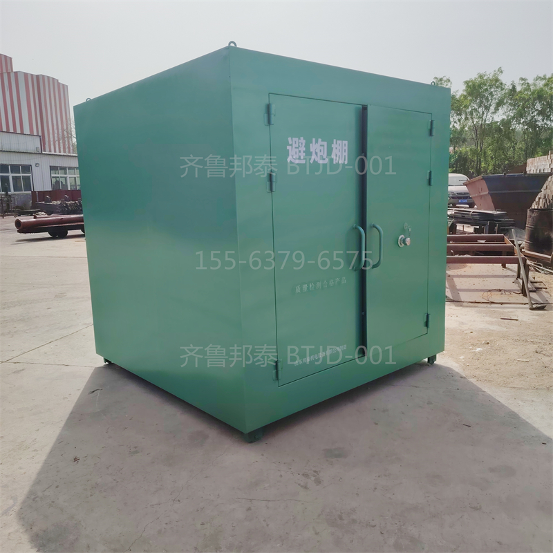 避炮棚通常采用高强度材料制作,如钢板厚度一般要求不低于6-10毫米,内部可加装木板或防静电毡以增强防护效果。