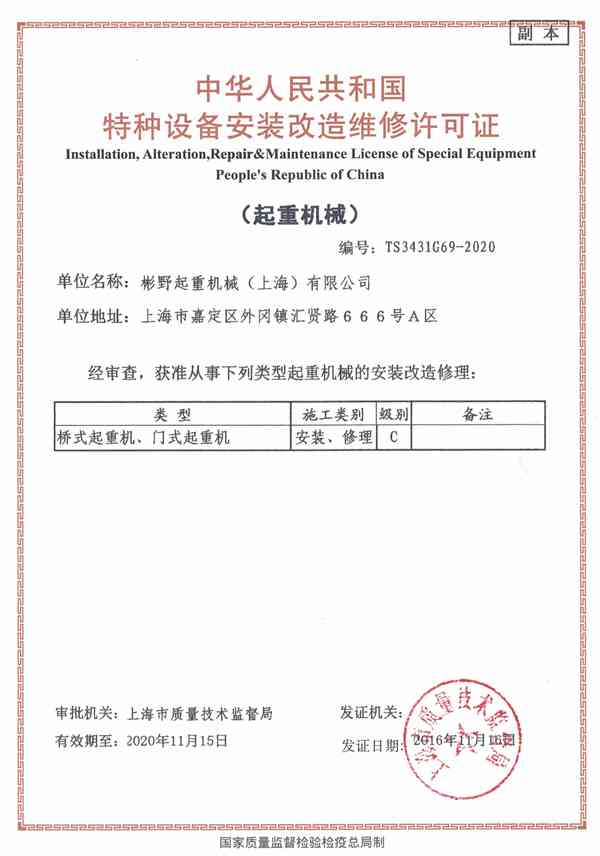 彬野起重机械(上海)有限公司