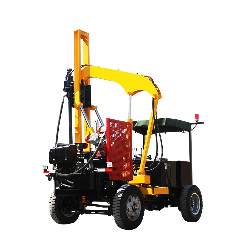 小型四轮公路护栏打桩机 多功能公路护栏打桩机 液压护栏打桩机