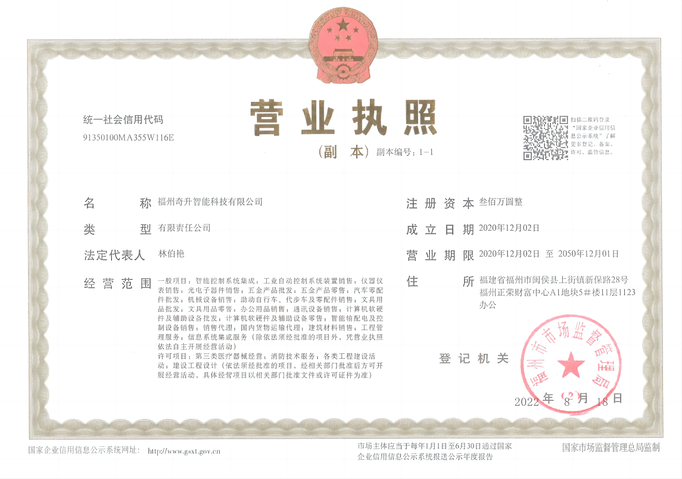 注册资金:300 万元成立时间: