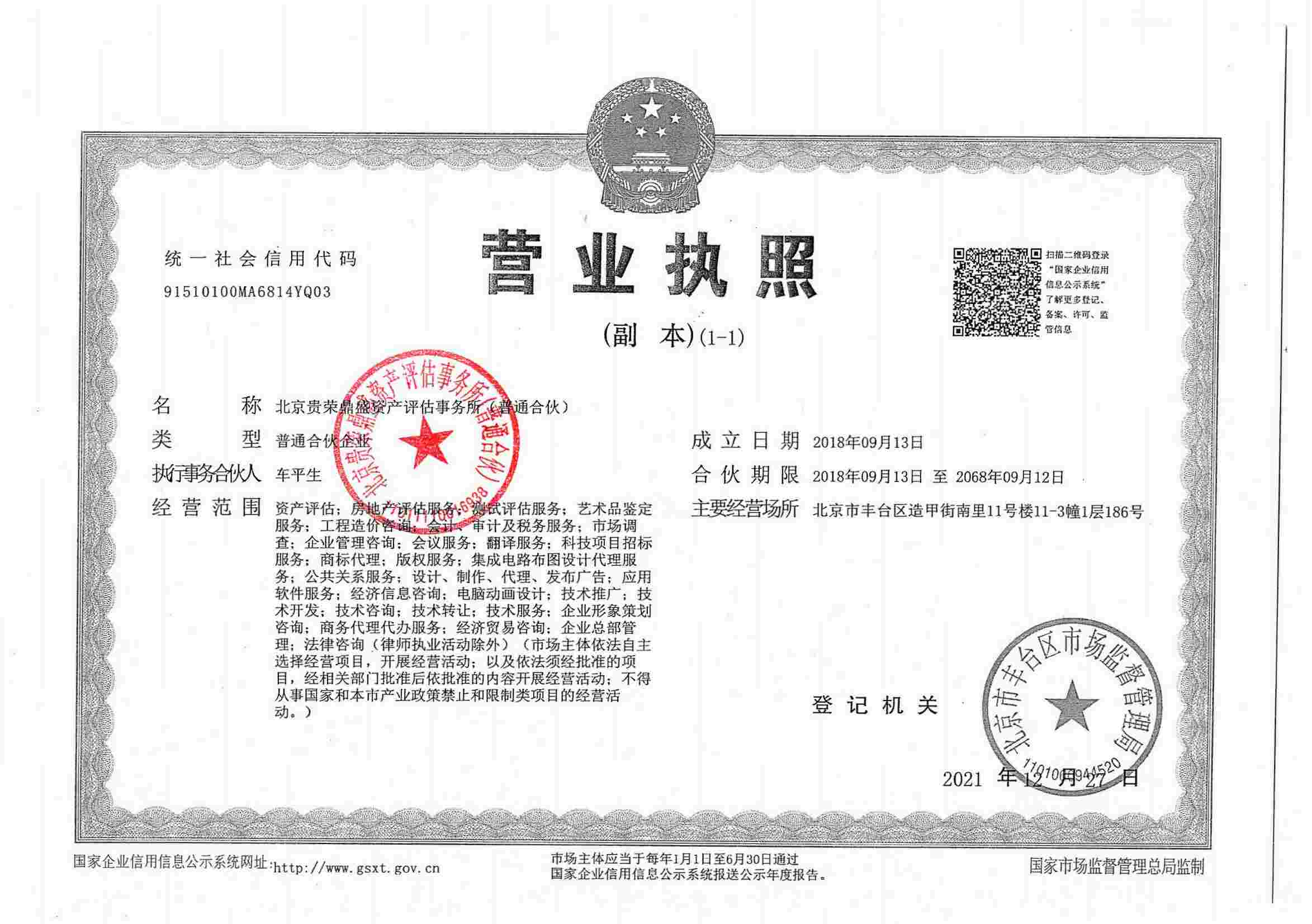 北京贵荣鼎盛资产评估事务所(普通合伙)