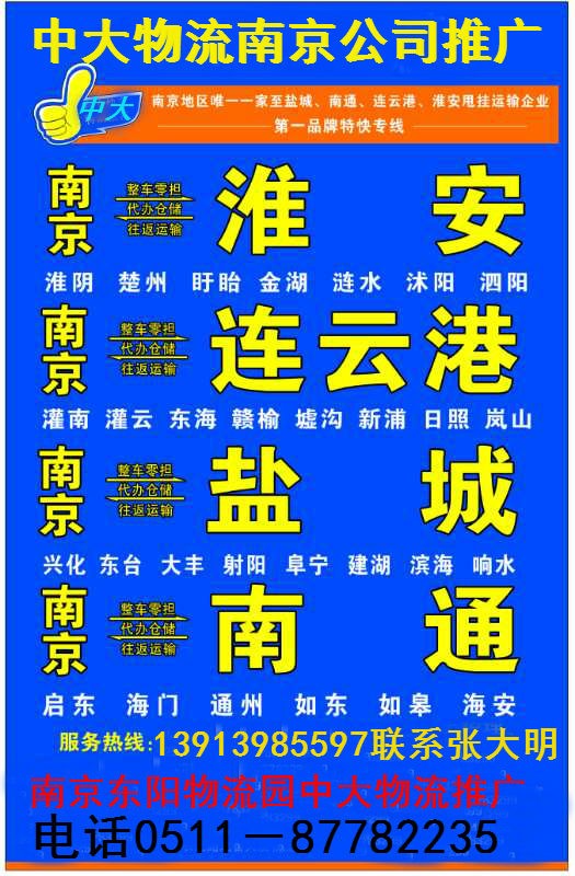 中大物流南京公司专线推广直达徐州邳州睢宁新沂宿迁泗阳淮安连云港快运运输2020-05-07
