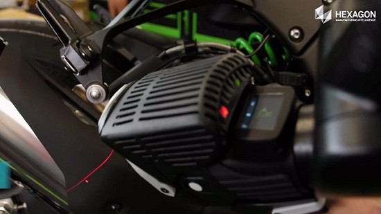 7轴绝对臂测量机配备多种测头组件,既能实现高精度接触式测量,也能进行高性能的3D激光扫描,在测量摩托车上各种高亮、高暗曲面时,可自动调整激光功率,无需进行表面预处理。同时,所配测头在测量过程中均可热插拔,无需停机和校准,高效便捷。