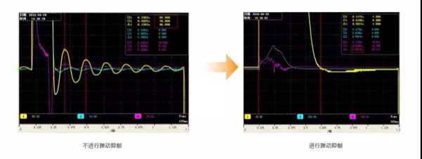 针对上述同类问题,英威腾深入生产现场获得灵感,创新性地研发了低频抑振技术,成功解决物品晃动、液体溢出、悬臂摇摆等多种课题,实现对高速运动物体的精准控制,达到极速静止的效果。