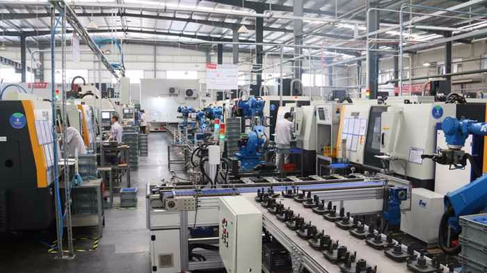 应用示范线由55台国产数控机床、24台机器人、4台检测设备、两条装配线、一条高频淬火线组成,是集成了制造、检测、装配、热处理等多工序的生产线,充分示范了精密加工中心、高速车削中心、数控双端面磨床、华中8型数控系统、机器人等专项成果。