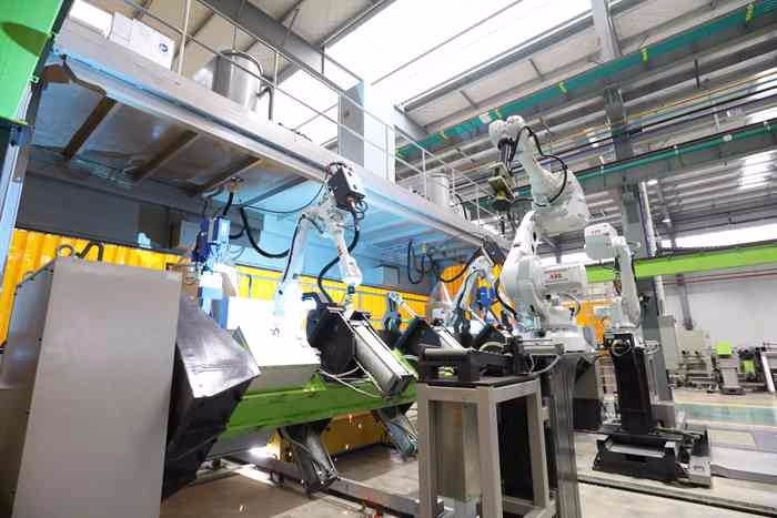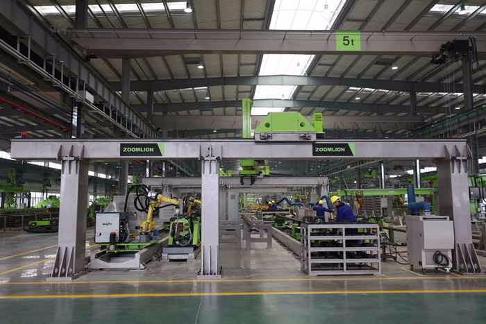 中联重科塔机智能工厂拥有12条自动化成产线,1万多个传感器、100多台工业机器人、35台无人搬运小车RGV和AGV、16套数控加工中心等先进设备,并集成MES控制系统,生产效率、信息化管理水平大幅提升,平均每10分钟产出1节标准节,每90分钟生产一条起重臂。