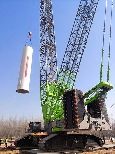 ZCC9800W履带起重机是中联重科融合信息互联、智能控制、结构优化、新材料、智能制造等先进技术打造的4.0精品。其综合起重性能全面高于同吨位产品,采用国内首创多变径组合臂架,最长178米,最大起升高度达到180米,完全满足160米高主流风机的吊装。ZCC9800W起重性能卓越;微动性能好,吊装定位精准;能完成多机构任意复合动作,工作效率高;拆装运输便捷;且搭载智能化功能与服务,自去年下线以来,广泛应用于国家风电项目建设中,目前,ZCC9800W市占率超过50%。此次ZCC9800W不仅荣登TOP50榜单,还获得应用贡献奖金奖的殊荣,是实至名归的新一代风电吊装神器。