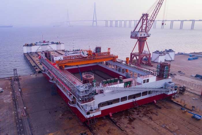 该船于2018年7月开工建造,历时5个月完成主船体分段制造和搭载,8个月实现整船下水。下水后,将进入桩腿安装和设备调试阶段,预计今年7月抵达深中通道现场进行调试和交付。