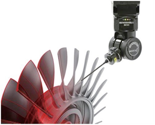 (2)采用配置多轴测座及高精度接触式扫描测头进行测量。雷尼绍公司的五轴测座和无级变速测头系统在坐标测量机上能实现高精度、超高速扫描测量(见图5)。