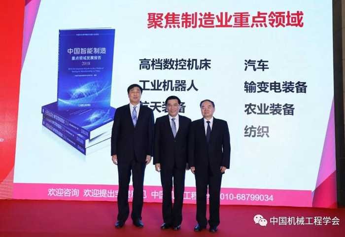 苗圩部长、周济荣誉理事长、宋军书记共同发布《中国智能制造重点领域发展报告(2018)》