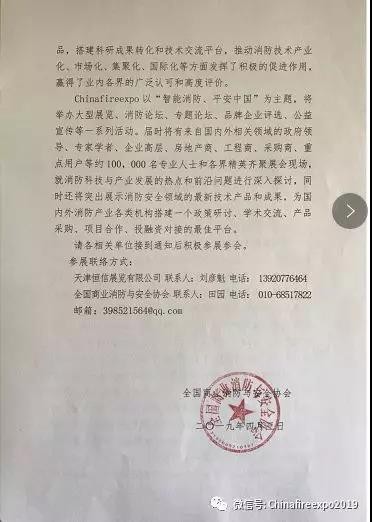 目前组委会已收到全国商业消防与安全协会等多封复函,均表示会积极组织旗下会员单位参加本次展会。天津恒信展览有限公司负责人在接受采访时表示:本次展会的举办对于加强四川省现代化消防行业发展,把推广新型消防产品作为转变成为经济增长的一个区域,为推动成都“三城三都”的建设献出自己的微薄之力,积极推进新型消防技术引进工作,组织各会员单位积极参会,共同促进四川省消防行业的快速发展。