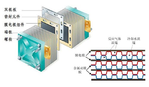 氢燃料电池主要由端板、金属双极板、膜电极组件等组成。电堆两侧为端板,中间由膜电极和金属双极板交替叠加,在一个燃料电池电堆中可能有几十块甚至上百块这样的双极板。因此,金属双极板在氢燃料电池中是最基本的组件之一,对燃料电池的性能有重要影响。