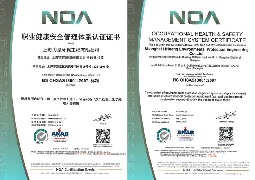 响应“绿水青山就是金山银山”理念,坚持保护环境基本国策。2019年9月24日,我司顺利通过了环境管理体系认证、职业健康安全管理体系,标志着上海力皇的日常运营符合环境管理方面、职业健康安全管理方面的相关要求。