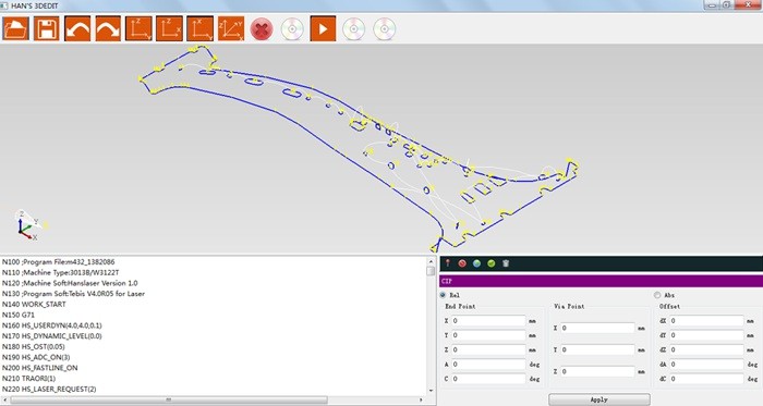 大族自行开发的HANS 3DEDIT在线修改程序软件,修改程序尺寸更加方便、快捷,换件速度快,提高了生产效率,节约了生产成本。在线修改软件如图7所示。