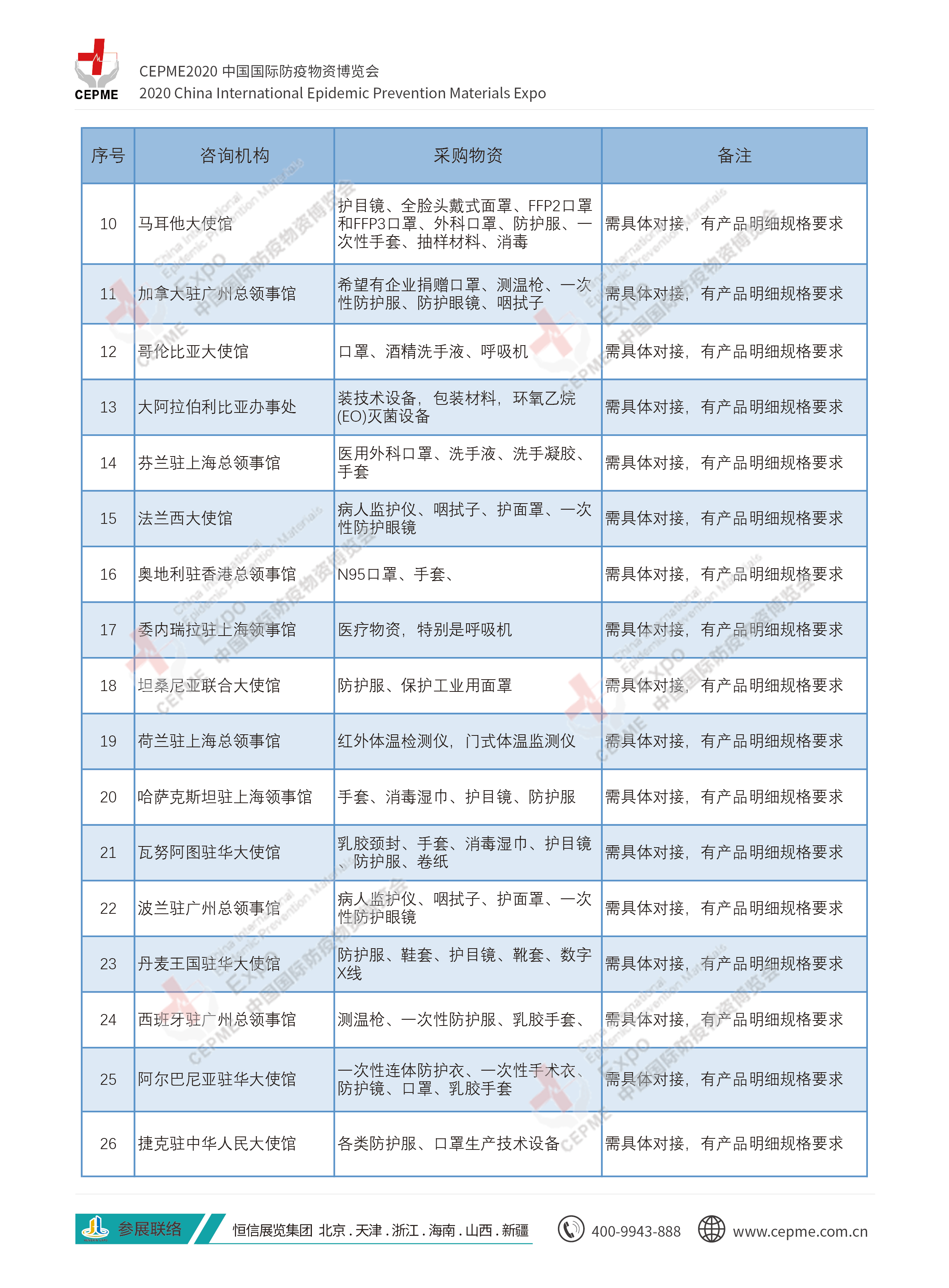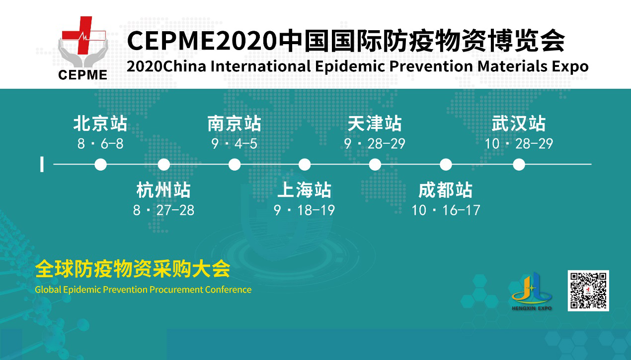 公共卫生是所有卫生健康工作的前哨和基础,它不仅是卫生健康的工作内容,更涉及生物安全和国家安全,2020突如其来的新冠肺炎疫情,打乱了国家、社会和个人的步调。在全民抗疫大战中,防疫物资是最为直接的防护需求,也是战胜疫情最有效力量。为贯彻国务院应对肺炎(2020)14号文件精神,做好疫情常态化的防控要求,推动我国卫生防疫事业发展,提高预防和处理突发事件水平,推广应用最新科技产品,助力防疫物资开展国际、国内贸易,在相关政府部门的大力支持下,由国家权威行业协会、恒信展览集团共同主办的全球防疫物资采购大会---“CEPME 2020中国国际防疫物资博览会”(简称:CEPME),将在8月-10月期间,于北京、上海、天津、杭州、南京、成都、武汉等地区巡回举办。20 行业协会 、100 主流媒体、200 国家大使馆/领事馆、1,000 参展商、30,000 贸易机构、60,000 名全球采购商参与巡展。通过举办CEPME,进一步促进中国与有关国家地区的国际合作,帮助中国防疫物资生产企业与外贸机构、驻华使馆、驻华商协会、贸易公司等建立贸易关系,欢迎届时参展、参观。