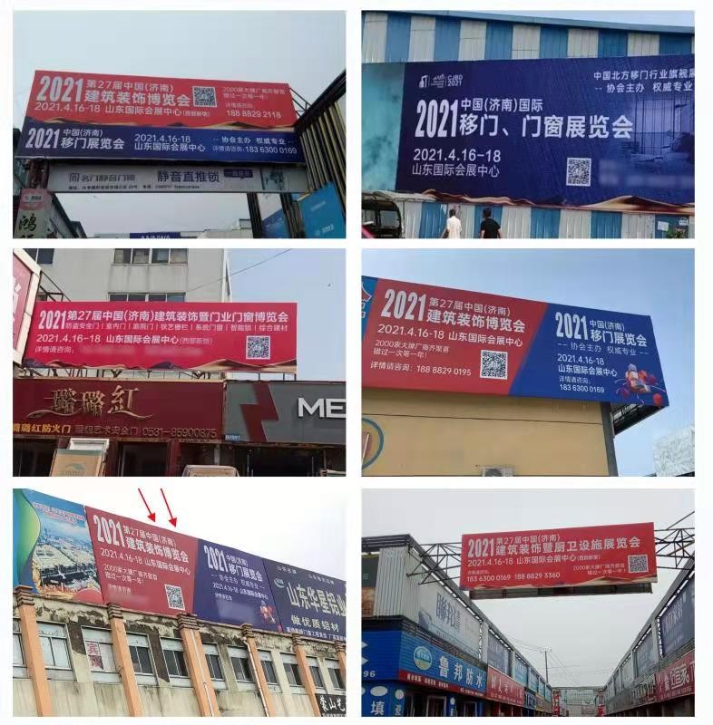 为了提高济南建博会品牌影响力、加深客户印象,同时继续挖掘济南建博会潜在客户,展会布局省内外各大市场,确立多个宣传点位,进行户外广告全面投放,同时还将投入城市地标、户外大牌、车体广告、电梯广告等户外广告,实现户外信息全覆盖。