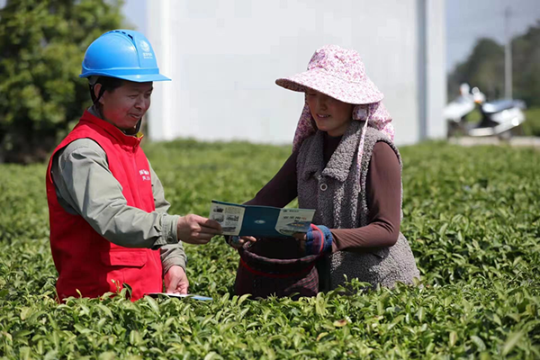 供电企业网格员深入山间茶场开展节能环保政策宣传。