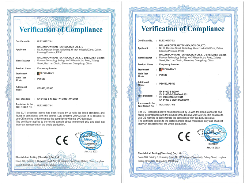 为了扩大出口业务,并根据国际市场需求提高我们产品的质量,近日,我司产品PS9530/PS9550/PS500系列电机环保一体化控制柜成功通过CE认证。