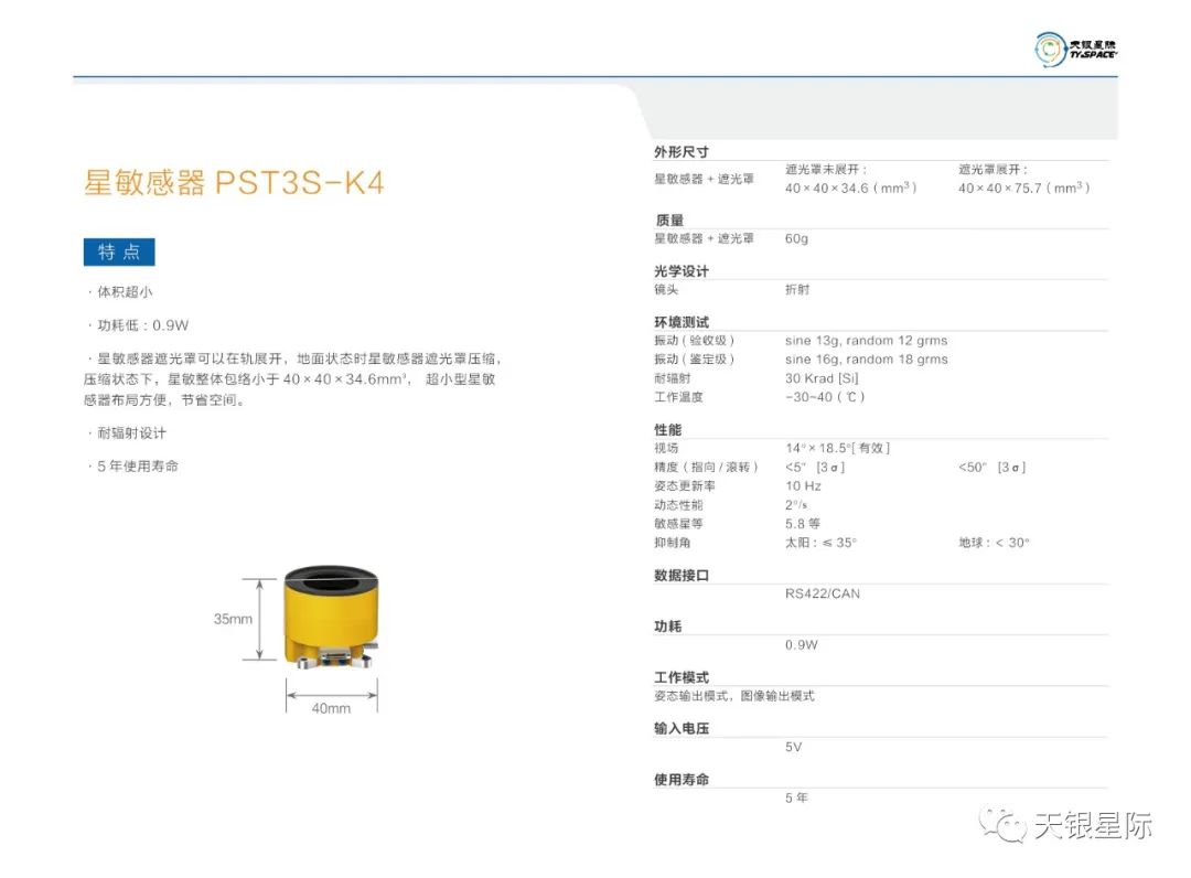 天银星际PST3S-K4星敏感器通过弹出式设计,实现了遮光罩在轨展开,安装高度仅35mm,重量轻,体积和包络小,专业应用于微纳卫星、立方星等超小型太空飞行器。