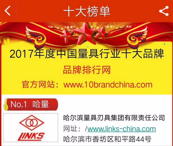 2017年度“中国量具行业十大品牌”排行哈量集团位居榜首在刚刚结束的中国量具行业十大品牌网络评选活动中,哈量集团以绝对优势位居排行榜第一。本次活动是由品牌排行网发起的,根据引导品牌消费,打造诚信品牌这一宗旨,目的在于为消费者选择商品起到导向和帮助作用。经过2018-02-07