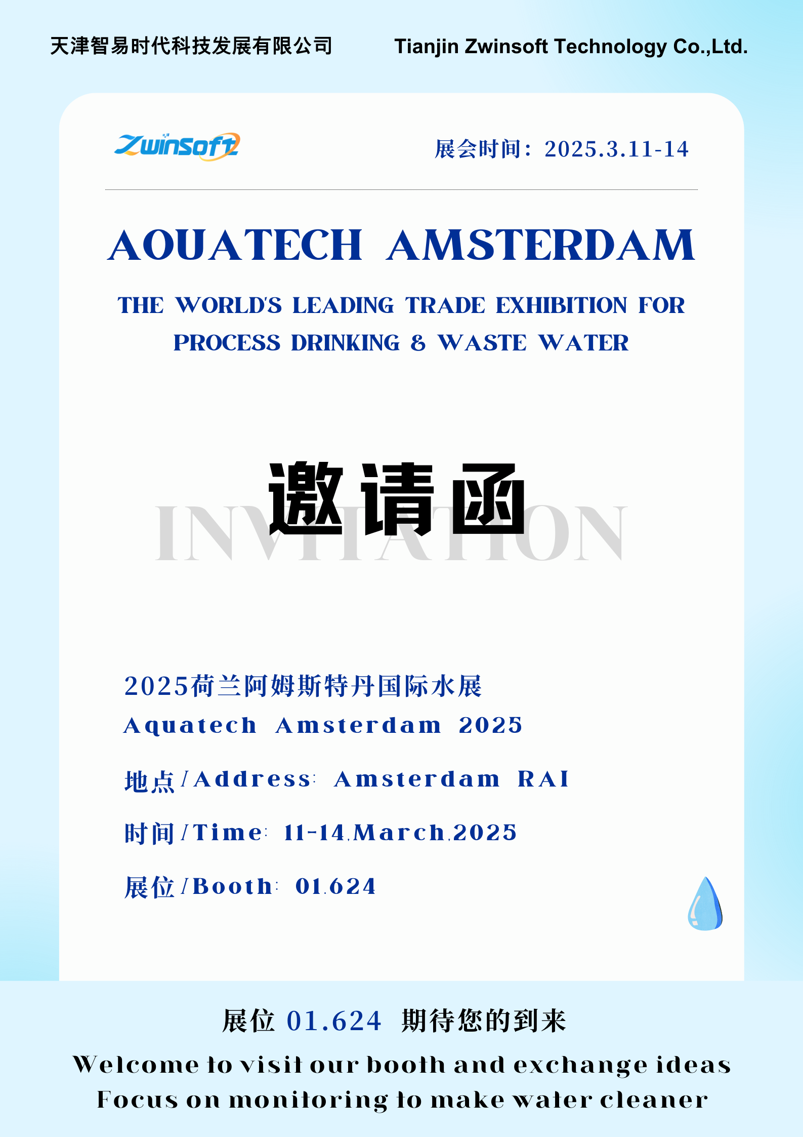 智易时代邀您共赴2025荷兰阿姆斯特丹国际水展2025年3月11日至14日,阿姆斯特丹将迎来全球水科技行业的盛会——2025荷兰阿姆斯特丹国际水展。展会将在RAI国际会展中心举办,预计将吸引来自全球的800多家展商和超过2万名专业观众。届时智易时2025-04-09