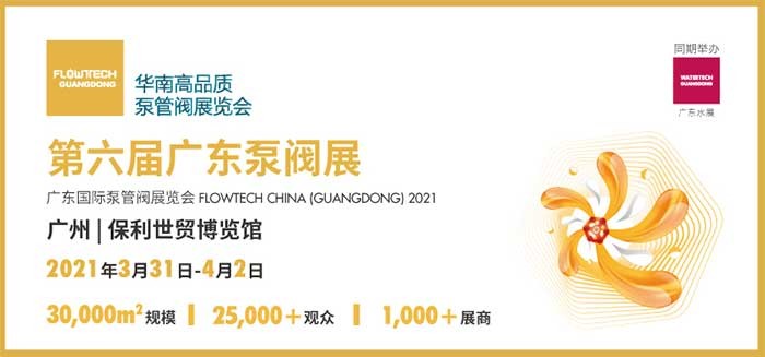 华南高品质专业泵管阀展览会 ——第六届广东泵阀展初春3月强势来袭2021年3月31-4月2日广州|保利世贸博览馆30,000㎡规模、35,000观众、1,000展商生机泵发,2021泵阀展犇你而来第六届广东国际泵管阀展览会(简称广东泵阀展)是华南高品质的泵管阀展览2021-03-11