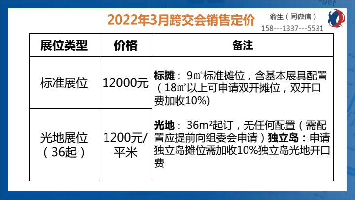 展位价格:
