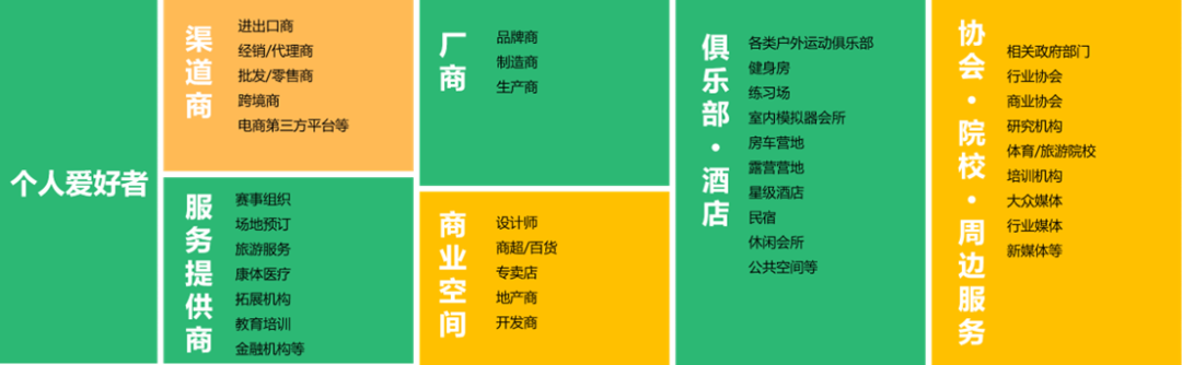 服务提供商 赛事组织、场地预订、旅游服务、体育运动、康体医疗、拓展机构、教育培训、金融机构等