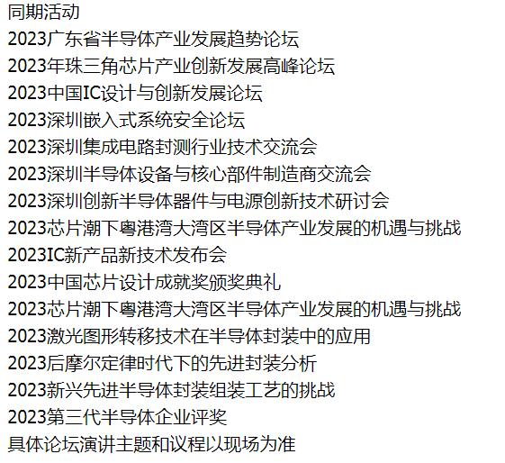 地区乃至全国的权威性、专业化半导体行业品牌盛会,2023第25届深圳国际半导体展览会将于2023年11月15日-19日在深圳福田会展中心举办,本届展会专注于整合半导体行业创新产品、技术、解决方案及商业合作模式的发掘,为半导体企业品牌推广、产品展示、交流合作提供一站式解决方案平台,助力企业实现全产业链的交流和互通。作为兼具规模和影响力的半导体产业品牌盛会,展会遵循市场发展趋势,给国内外半导体行业创造提升品牌度和开拓市场的一个契机。充分发挥其传递市场信息与交流先进技术的窗口作用,把脉行业发展方向。共享国际化大平台,共拓半导体大市场,让我们携手同行,共创商机!