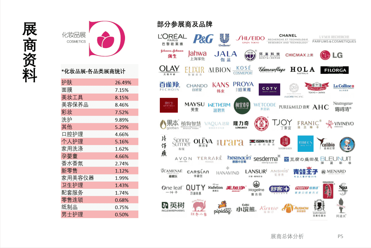 化妆品展:护肤品、彩妆、面膜、香水、微电商品名、男士护理、孕婴童护理、化妆用具、洗涤及个人护理用品等;
