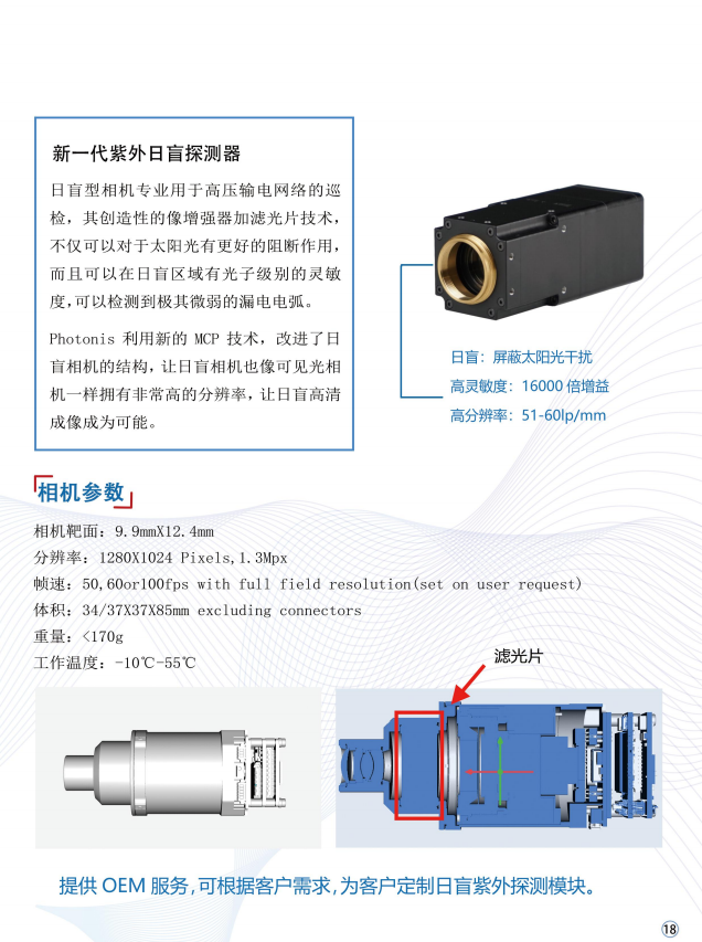 性的像增强器加滤光片技术,不仅可以对太阳光有更好的阻断作用,而且可以在日盲区域有光子级别的灵敏度,可以检测到极其微弱的漏电电弧。