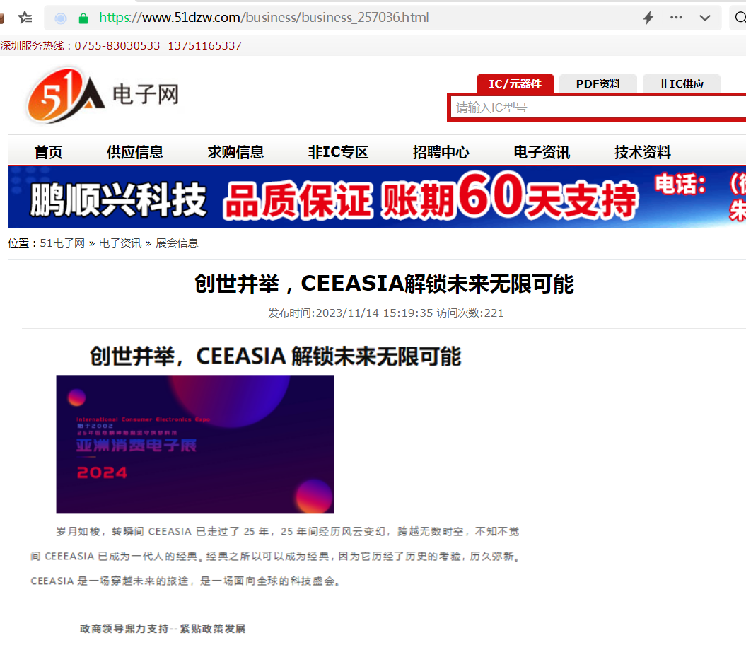 第22届CEEASIA暨亚洲消费电子展2024年度合作媒体展会宣传预热已正式开始,食品伙伴网、碧威特51电子网、智能网、工业自动化网、云同盟、艾瑞网、中国智能锁网、聚展网、大比特网、环球会展网、去展网、前瞻网、techweb、智家网、华强电子网、产业世界、IM信息、eepw电子产品世界、c114、非常设计师网、好居网、3G网站专家、5G展会之星、全国自动化网、自动化设备门户网、会查查、跨国采购网、展会港、智哪儿、it168、电子发烧友、驱动中国、展会点评网、维库电子网、机电之家、世展网、87870VR网、会展管家、能者会展、电子通、好展会、新火种、界面亚游会官网、塑料机械网、包装印刷产业网、重工机械网、兴旺宝、镁客网、智品说、亚洲新能源汽车网、会猫网、万秀网等二百多家行业媒体已通过平台首页官网进行展会宣传图、邀请函推送、展会亚游会官网推送、公众号、百家号、APP、抖音、快手等渠道进行同步推送。这些媒体涵盖了各行各业,让更多的人了解到展会的信息。吸引更多人参与展会,了解展会的内容。无论是从展会的规模,还是到展会的宣传,都可以看出CEEASIA2024在努力为参展商和观众提供一个更优质的展览环境。