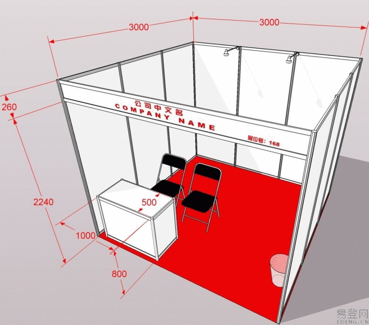 3mx3m=9m普通标展:14800RMB/个:双面开口标展:15800RMB/个:国际展商:18800R MB元/个:标准展位包括地毯、三面围板、公司名称楣板、咨询桌一张、椅子两把,射灯两盖、电源插座 特殊用电请事先说明,展馆另行收费)室内空地: