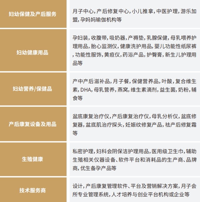 月子中心/母婴店/妇产医院/妇幼保健院/代理商/经销商/批发商/中医诊所/养生美容馆/国医馆/孕装专卖店/童装/跨境电商/电商/私域/社群团购/新零售/药店/药妆店/超市/便利店/品牌商/制造商/上下游服务商及其他。