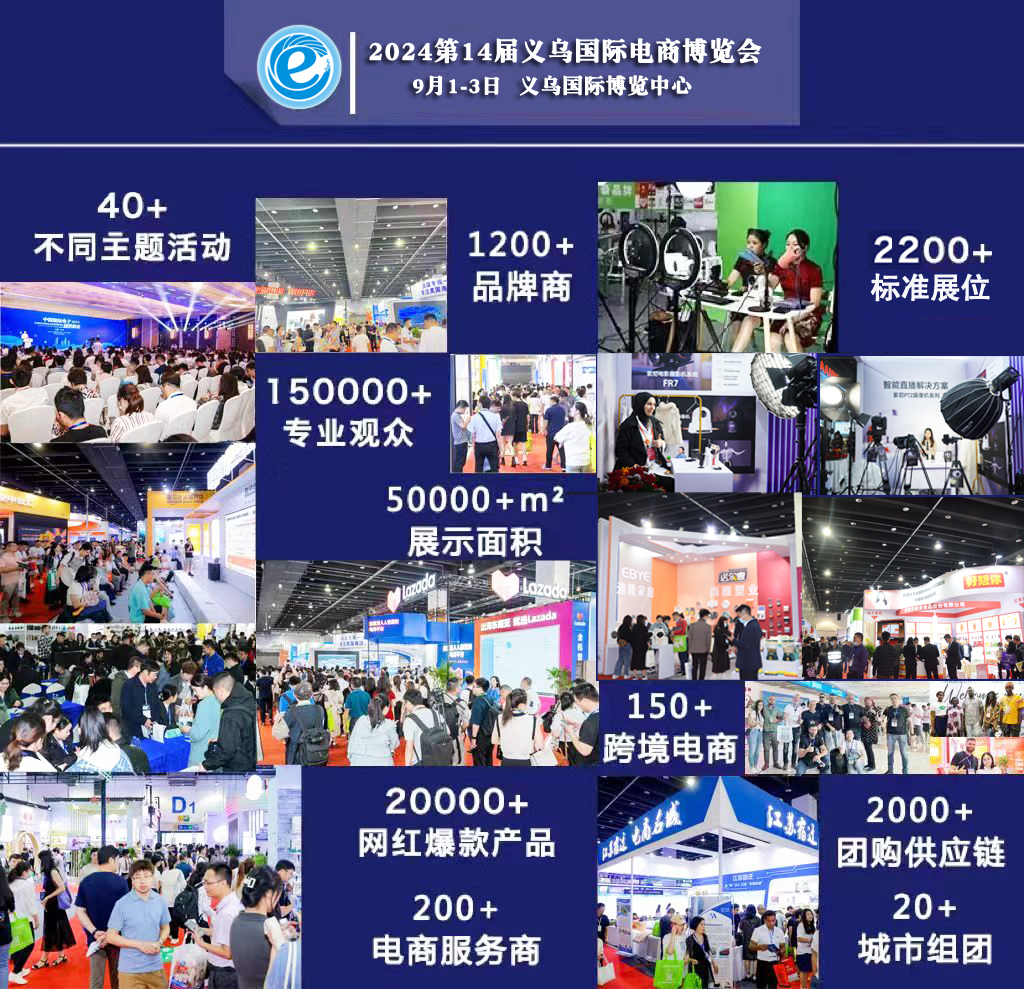 2024中国国际电子商务博览会(简称:2024第14届义乌电商博览会)以"构建新发展格局 发展高质量电商”为主题,将于2024年9月1-3日在义乌国际博览中心举行!集中展示国内外最新的电子商务研发应用成果和全产业链服务。