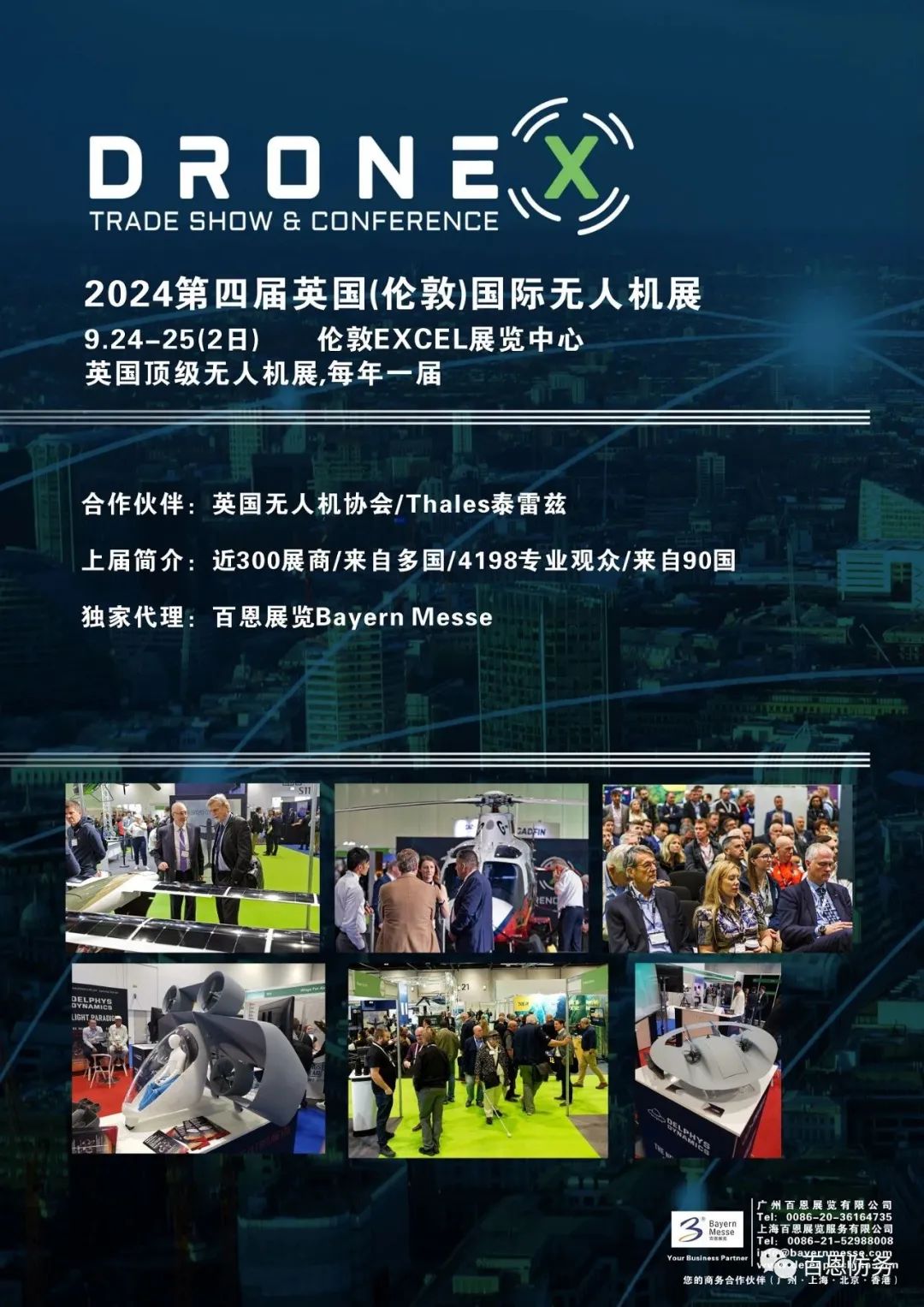 该展始于2021年,每年一届。据悉, 全球无人机市场将从2020年的225亿美元增长到2025年的428亿美元,复合年增长率为13.8%。该展得到英国无人机会/Thales泰雷兹等大力支持;上届规模为近300展商/来自多国/4198专业观众/来自90国;该展专注未来飞行、商用、军事防务、应急救援四大领域;专业观众来自英国交警/陆军/海军/空军/国防部/内务部/交通部/能源部/外交部/消防应急/铁路/苏格兰救援/多地警署/军事航空局/民航局/空中救援/ESA欧洲航天局/NATO北约等;同期举办多场论坛活动;本届展会,百恩展览独家组团参展,符合中小企业标准的企业,我司将协助申请“中小企业国际市场开拓资金补贴”。