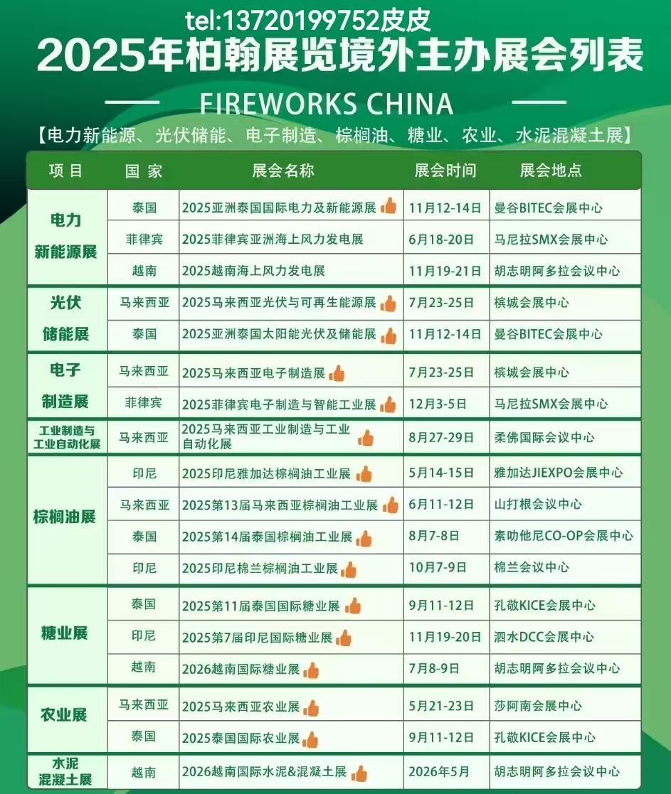2025年亚洲(泰国)国际电力及新能源展是东盟地区唯一专业发电、电气和电力传输设备、太阳能光伏、储能展览会,汇集了政府和私营电力和电气公司供应商及其支持行业的国际会议,聚集在泰国曼谷,展示了亚洲电力、发电和太阳能行业的最新发展。