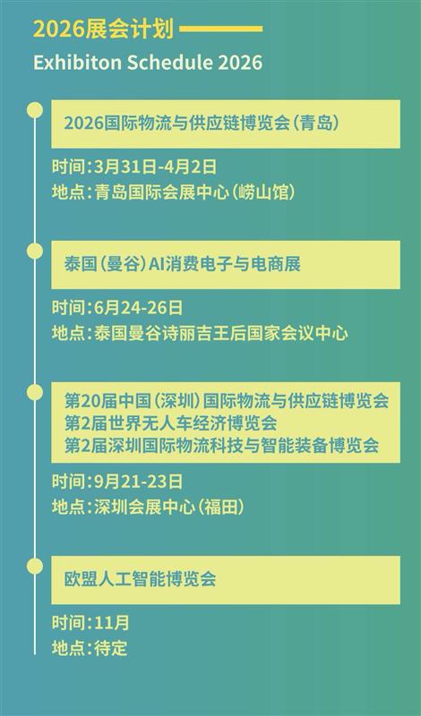 2026年9月21-23日,第20届中国深圳国际物流与供应链博览会(简称“深圳物博会”)将在深圳国际会展中心(宝安新馆)盛大启幕!作为国内物流与供应链领域历史最久、规模最大、国际化程度最高的行业盛会,本届展会以“链接全球,智链未来”为主题,依托深圳“粤港澳大湾区核心引擎”与“国际物流枢纽”优势,汇聚1800 优质展商、10万 专业观众及50 国家采购商,打造“展 会 贸”一体化生态平台,诚邀您共赴这场物流与供应链的智慧之约!